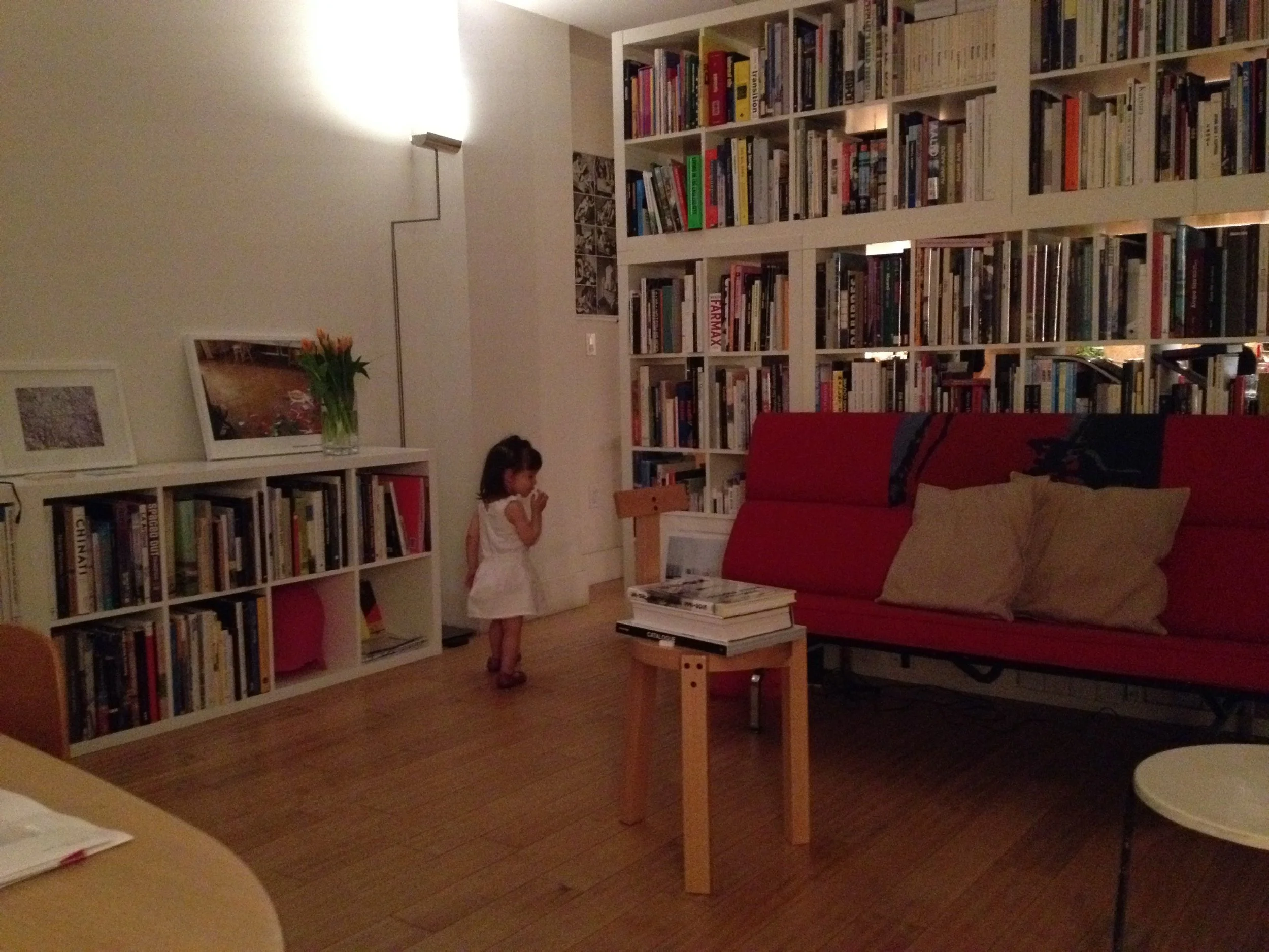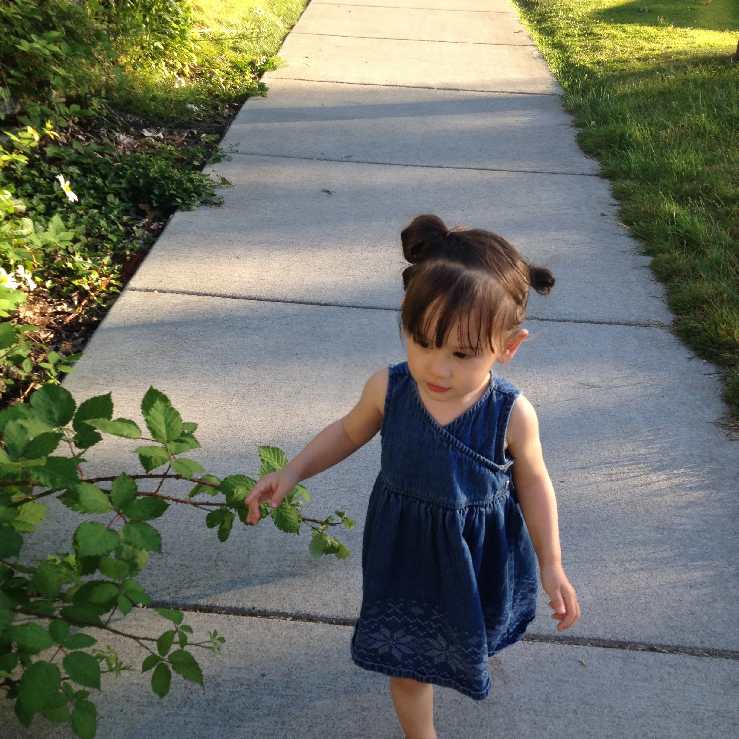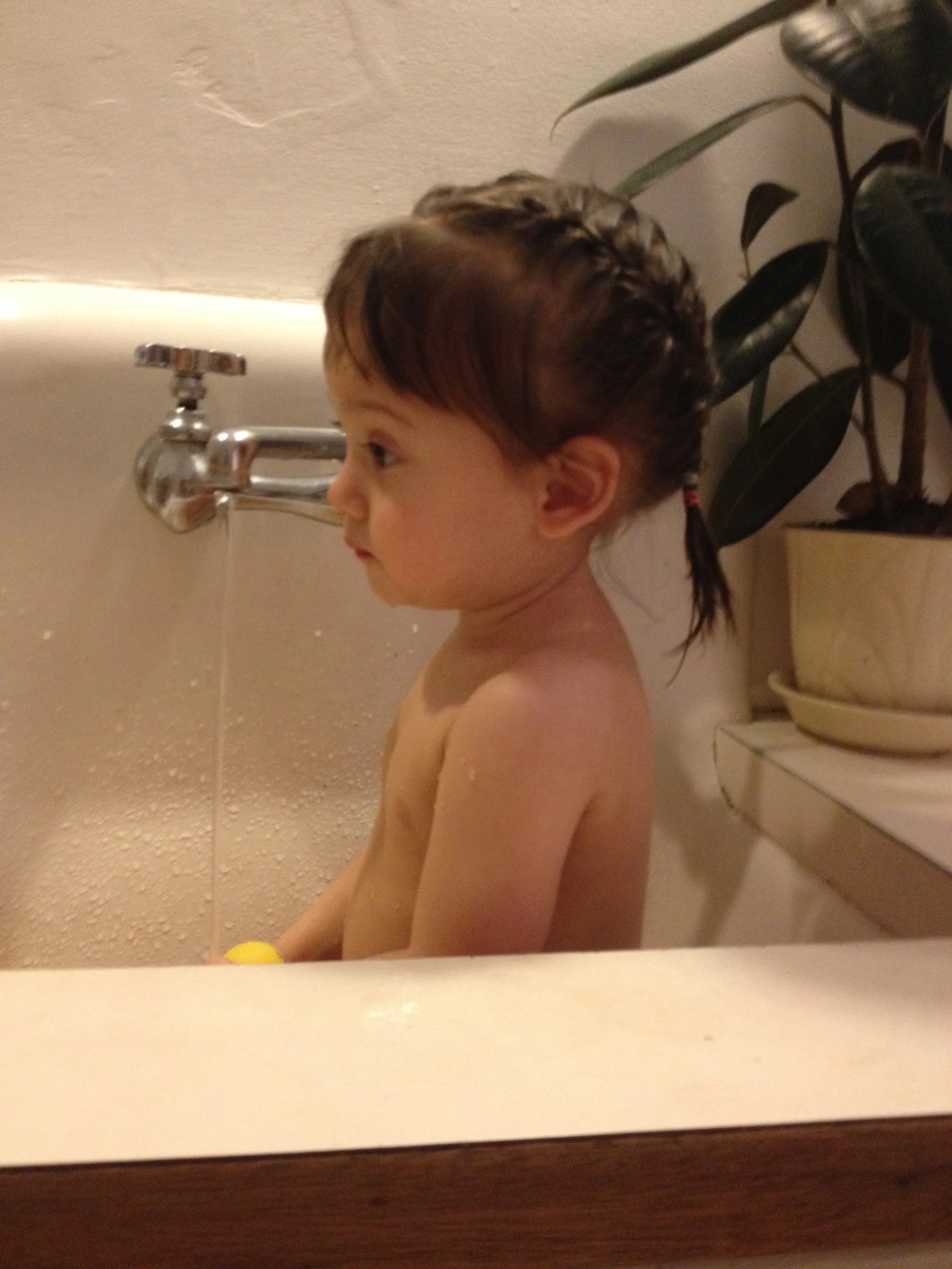 She speaks English. She dances and sings. She knows right from left and can get most of the way through the alphabet. She counts to ten and says please, thank you, and excuse me. She speaks in complete sentences 25% of the time. She knows most food names, including spices because she spends most of her time in the kitchen. She loves music and books, and insists I spend all day singing. She likes to get dressed up and go out.